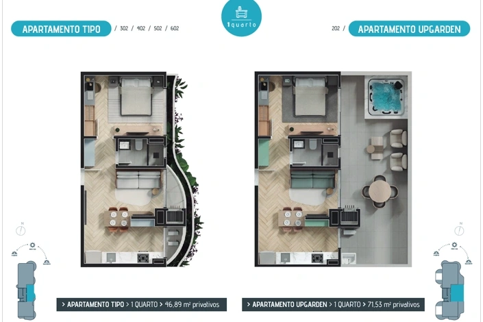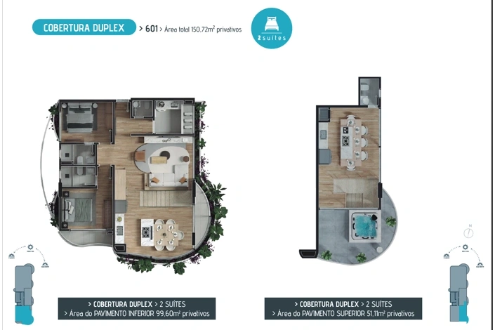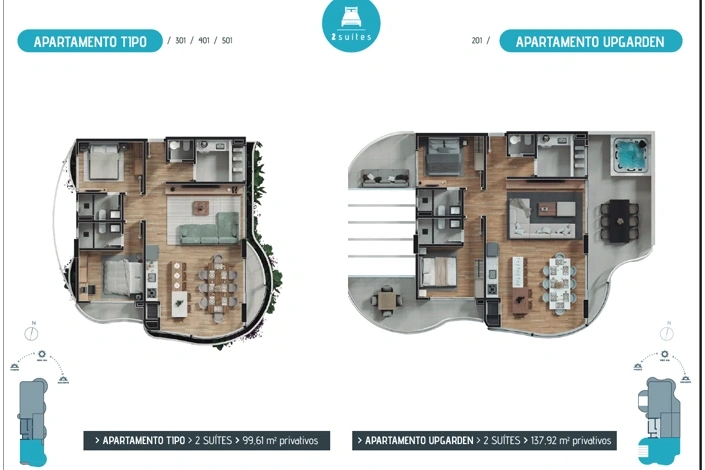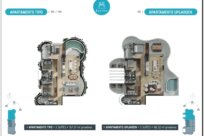 Tipo – 2 suítes ou 2 suítes + 1 quarto
