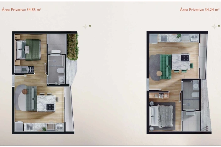 Localizado na Rua São Matheus, nº 1047 – Caiobá, Matinhos/PR, o Jardins Caiobá prioriza integração com a Mata Atlântica e entrega unidades com marcenaria fixa instalada.