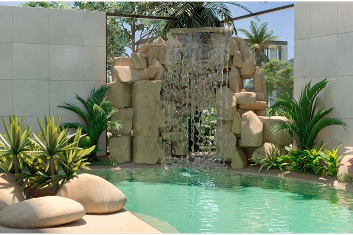 Piscina praia aquecida com cascata