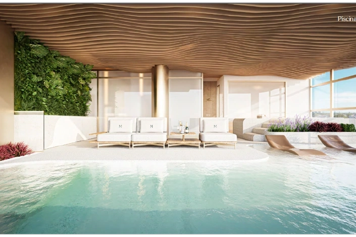 Piscina praia aquecida com spa e cromoterapia