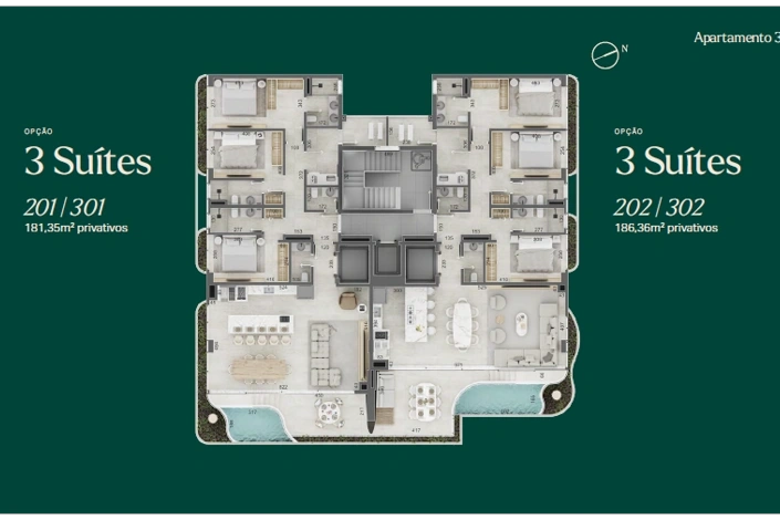 Apartamentos – 3 a 4 suítes